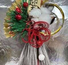 来年のお正月を手づくりのしめ縄飾りで迎えてみませんか。真っ赤な水引のお花と扇などをあしらい、初心者の方にも作りやすく飾りやすいデザインです。