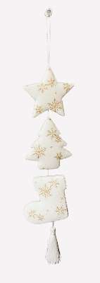 厚紙を組み立て布を貼って仕立てるカルトナージュの技法を使い、「ツリー・星・ブーツ」3種のオーナメントを作ります。綿を貼ってふっくらさせ、周囲を白いブレードで飾り付けます。ひとつずつリボンをつけても、3種類を繋げてタッセルをつけても素敵!当日はお好きな方を選んで作ります。