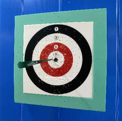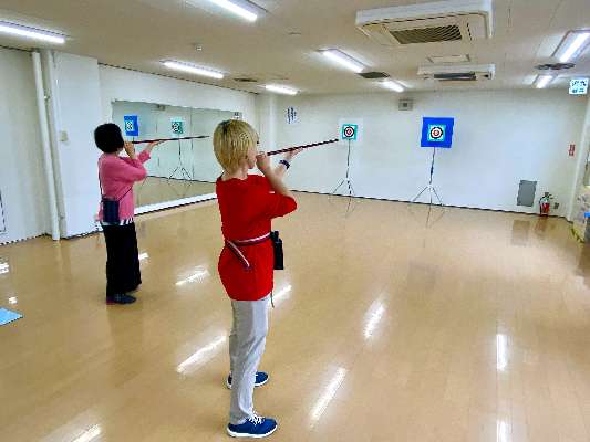 6メートル先の的(33㎝×33㎝、白い部分)に息を使って矢を放ち、得点を競うスポーツ。腹式呼吸をベースにした呼吸法で精神力・集中力を高め、インナーマッスル(深層筋)も鍛えます。どなたでもゲーム感覚で気軽に健康づくりを楽しめます。