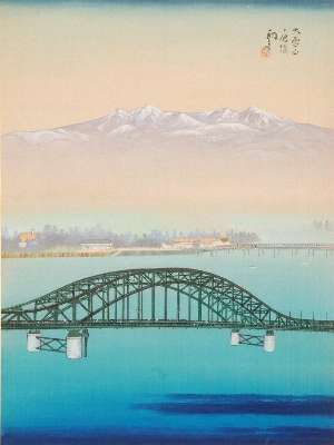 3枚目/吉田初三郎「北海道十景」のうち「大雪山と旭橋」北海道博物館所蔵