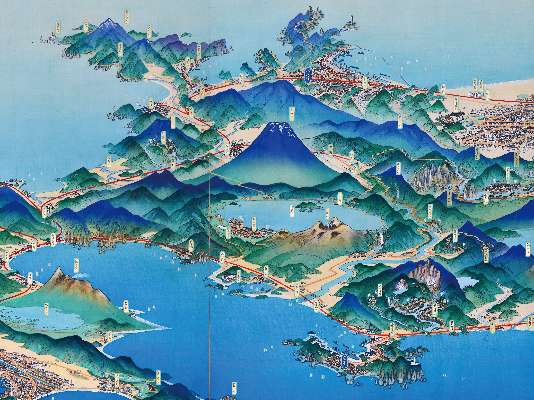 1・2枚目/吉田初三郎「北海道鳥瞰図」北海道博物館所蔵