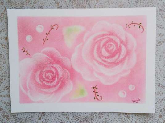 パステルをパウダー状にして指で描きます。「好きな色で描く薔薇のアート」はお好きな色をアレンジして楽しめます。