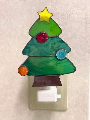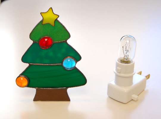 コンセントに挿して灯すタイプのミニランプです。赤・青・オレンジのガラス玉がアクセントになっているコロンと丸っぽいツリーです。ツリーの部分だけを置いて飾ることも出来ます。