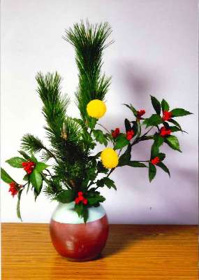 若松、菊、千両を使ってお正月のお花を生けます。 ※写真はイメージです。