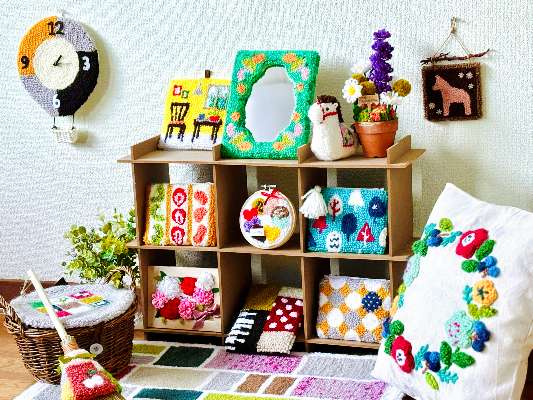 毛糸を通した専用のニードルを使って、布に繰り返し刺していく刺繍技法です。毛糸や刺繍糸の太さ、刺し方に…