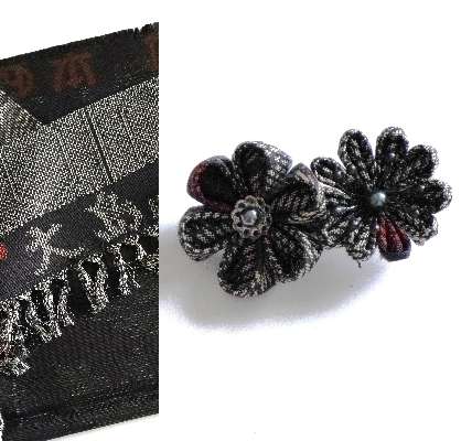 特別な方法で、厚みのある着物生地をアクセサリー等に仕立てます。 ご家庭で眠っている着物ハギレにも応…