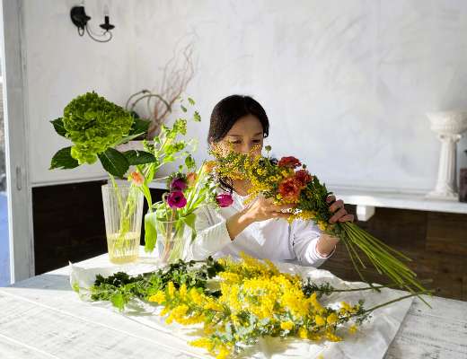 花材のナチュラルな美しさを引き出せるように、季節と生命力が感じられるように、そして飾って心地よくなる…