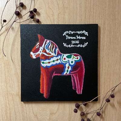 来年の干支である馬をおしゃれに描きます。スウェーデンのダーラナホースは代表的な伝統工芸であり、幸運を…