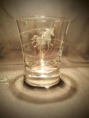 来年の干支であり幸運のアイテムでもある「馬」を冷酒グラスにワンポイントを彫っていきます。