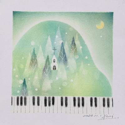 3/25(水)/パステルアート描く「白い教会とピアノ」